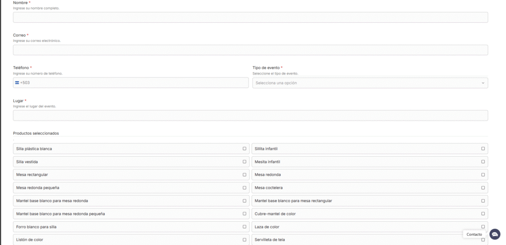 Ve a tu lista de cotización y completa el formulario con los detalles de tu evento.