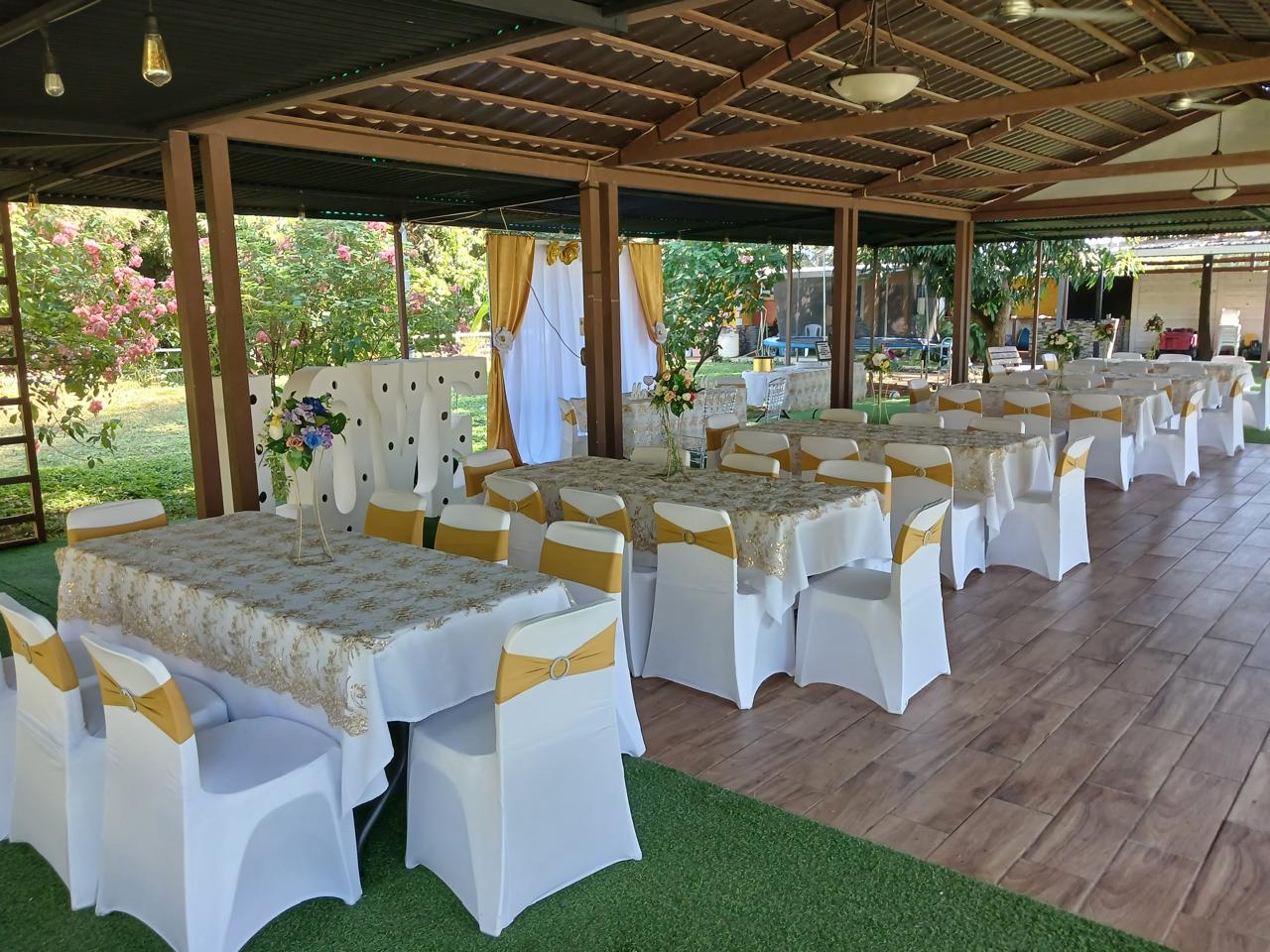 Incluye silla plástica, forro blanco y laza de color.